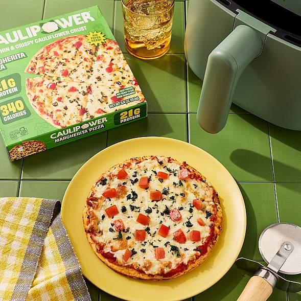 CAULIPOWER’s #1 selling flavor is now available in a size just for YOU! This Margherita pizza is perfectly topped with melty mozzarella, bright tomatoes and fresh basil on our thin & crispy cauliflower crust, flavored with Italian herbs and parmesan cheese. With 21g of protein, only 340 calories, and 4g of fiber, this is a quick bite you and your tastebuds will feel good about.