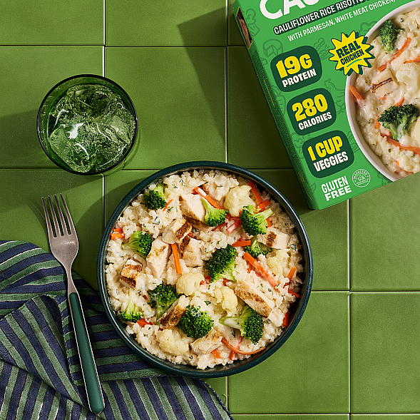 CAULIPOWER believes you should never have to choose between taste, convenience and high-quality ingredients. This delicious creamy garlic parmesan cauliflower risotto is topped with fresh broccoli & cauliflower florets and grilled chicken. Comfort food (and a full cup of veggies) never tasted so good!